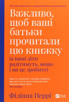Нині соціальні мережі заполонили милі фоточки щасливих батьків та радісних малюків? Тому багато новоспечених батьків можуть потрапити в пастку солодких очікувань прекрасного та безтурботного батьківства, а потім страждати від депресії, про яку ніхто не попереджав. Або ж навпаки, жахливі відео з нападами істерик у дітей?, що геть відбивають бажання заводити собі цих "монстренят". А той, хто все таки осмілився, потім панічно боїться приходу того бісового кризового періоду. Тобто маємо дві крайності. Але ж дитина не може постійно бути милою принцесою чи лютим чудовиськом, ці стани змінюють один одного, як день та ніч. Тому, щоб вижити між цими контрастами та не втратити здоровий глузд, Філіппа Перрі пропонує вирішення у вигляді своєї книги, під назвою "Важливо, щоб ваші батьки прочитали цю книгу", яка допоможе отримувати задоволення від батьківства та знайти сенс у догляді за дитиною, не перетворюючи своє життя у день "бабака", а також при цьому навчить не боятися дитячих істерик чи підліткового періоду. Звісно ж, цю книгу ліпше почитати ще до вагітності, замість перегляду милих фоточок та відео ?, адже вона точно налаштує на успішний шлях батьківства без замилювання очей. Але якщо ви вже батьки немовляти/тодлера/дитини дошкільного чи шкільного віку/ або навіть підлітка, вам теж буде чого навчитися. І навіть якщо вже зроблено купу помилок, все ще можна виправити. Головне бажання та підходяща книга/спеціаліст, які допоможуть, як і дана книга. Адже вона має практичний досвід, де психотерапевтка з двадцятирічним досвідом роботи ділиться ситуаціями зі своєї практики, де можна знайти багато корисних порад, як легко вийти зі складної ситуації, а також купу вправ та ігор для батьків і дітей. Авторка безпосередньо описує також свій шлях материнства і труднощі з якими вона зустрічалася. Тож ваші діти точно радітимуть, якщо ви прочитайте цю книгу. А ще книга буде корисною для батьків, чиє власне дитинство було не надто щасливим, на чиї емоції ніхто не звертав увагу, ба більше за "неналежний" прояв емоцій карали, коли не можна було не лише плакати, а й голосно сміятися. Для тих , кого виховували на порадах старшого покоління, чиє дитинство теж було нелегким та недолюбленим, на кшталт цих, що дітей не можна брати на руки; не підходити та не втішати коли плачуть та саме болюче, що дітей обов'язково потрібно фізично карати. Тому що саме так їх виховували і вони вважають це нормою, адже виросли, тож і далі передають цей сумний досвід виховання своїм дітям. Проте маю надію, що нинішні батьки дедалі більше цікавляться вихованням дітей і ми зможемо викорінити "нездорову" методику виховання, що передавалася від покоління до покоління. Тож, чим більше батьків прочитає дану книгу, тим краще майбутнє чекає на наших дітей. Тому нижче виділила кілька важливих цитат, які отримала в книзі? "Бути батьками завжди витратно в плані часу. Краще вкласти цей час у позитив, запобігаючи проблемі, ніж у негатив, після того як проблема вже виникла". "Ми знаємо, що з алкоголіків і наркозалежних людей бувають не найкращі батьки, адже для них пріоритетом завжди була і є речовина, від якої вони залежні, тож їхнім дітям відмовлено в значній кількості уваги, якої ті так потребують. Як на мене, то залежні від телефона не вельми від них відрізняються". "Неабияк бажаючи своїм дітям щастя, ми ін