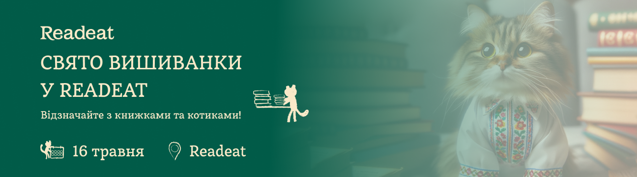 Замовляйте найкращі книжки до Дня вишиванки з безкоштовною доставкою від 500 грн. І приходьте святкувати разом з котиками до книгарень Readeat.