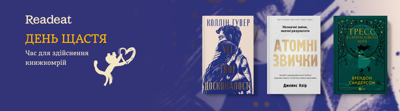 Також не забувайте ділитись враженнями про вподобані книжки на Readeat.com – і за кожний відгук, який відповідає Правилам, отримуйте бонуси на рахунок!