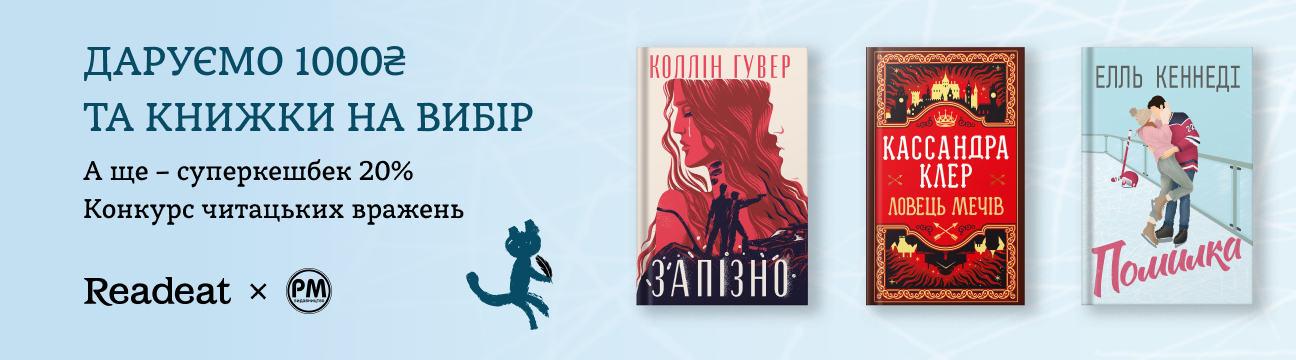 А ще на період проведення конкурсу, до 17.08 включно, підвищуємо бонусний кешбек на книжки «Видавництва РМ». Замовляйте їх на Readeat.com або в книгарнях Readeat – та отримуйте цілих 20% бонусів замість стандартних 5%🔥