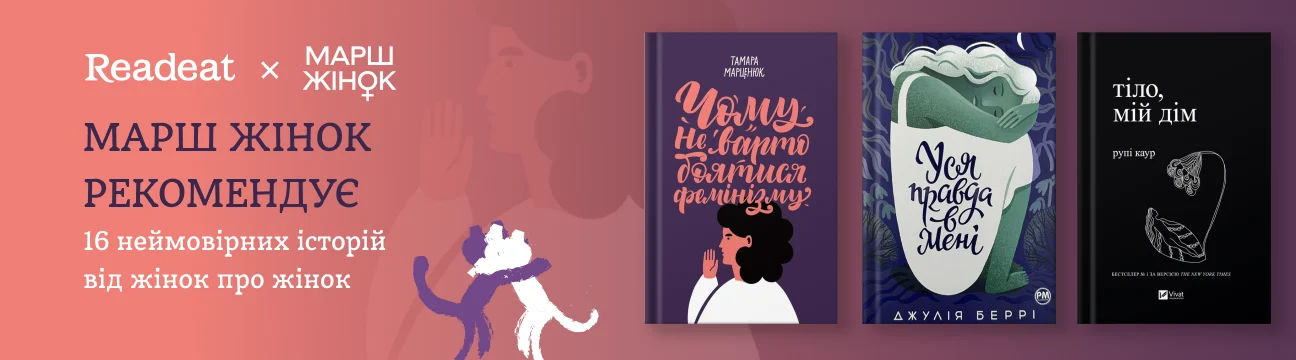 Котики Readeat разом із благодійною організацією «Марш Жінок» підготували добірку книжок, написаних жінками для жінок. Це історії про силу, вразливість, право на голос і право бути собою. Про те, як виходити з болючих ситуацій, як знаходити підтримку — і як нагадувати собі, що ви ніколи не самі.