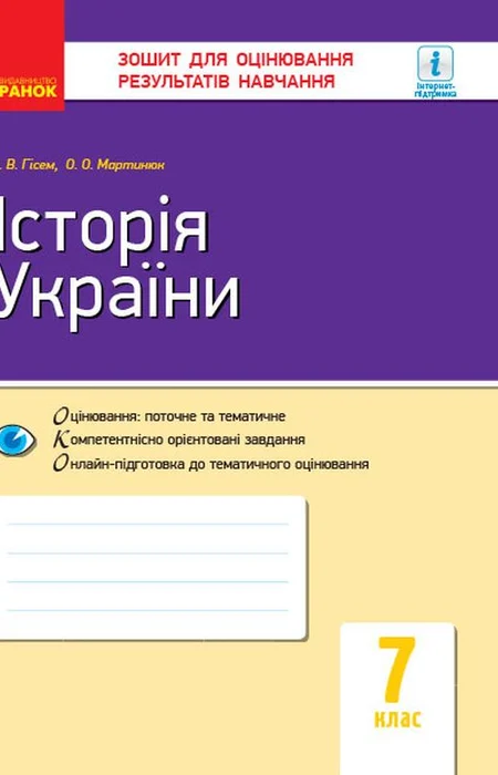 Посібник містить завдання для поточного, тематичного та річного контролю результатів навчання учнів 7 класу закладів загальної середньої освіти з курсу історії України. Кожна робота представлена у двох варіантах.
